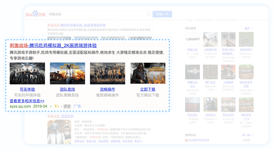 基于全球第一中文搜索引擎百度搜索,在搜索结果显著的位置展示推广信息