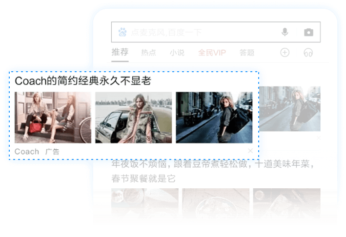 借助行业领先的百度搜索和资讯流推荐,把广告展现给精准用户