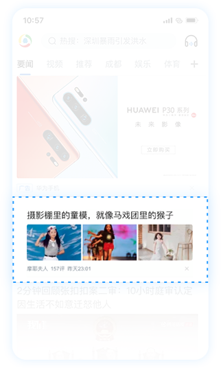 在百度APP、百度首页、贴吧、百度手机浏览器等平台的资讯流中穿插