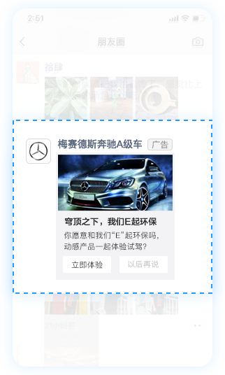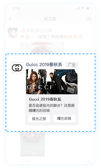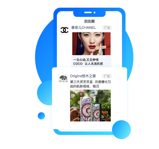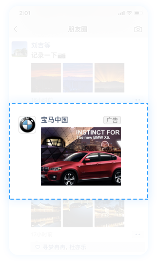 在朋友圈以类似朋友的原创内容形式展示的原生广告和公众号广告